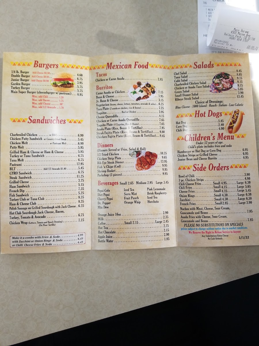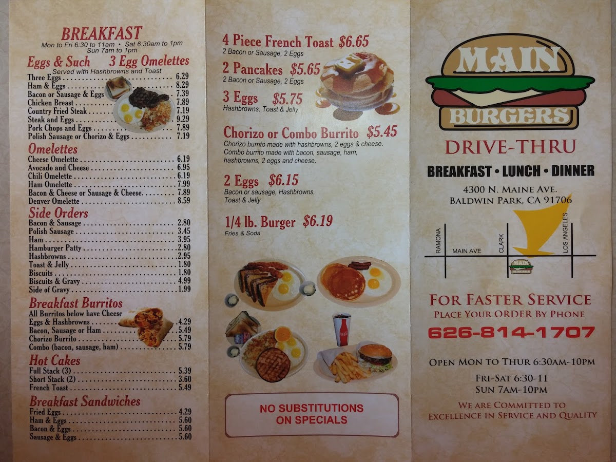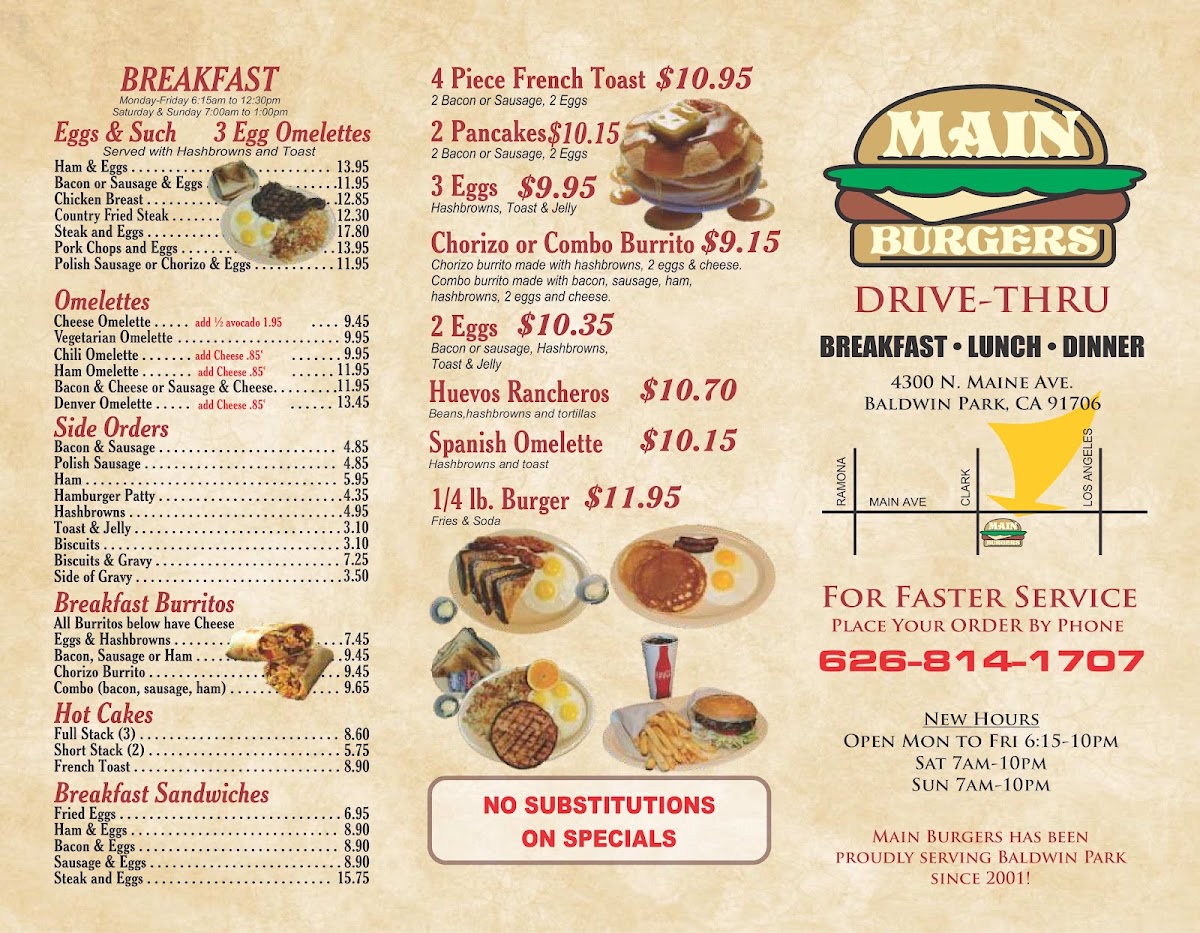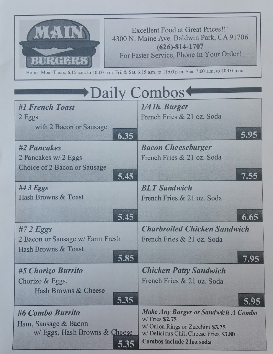 Main Burgers Menu